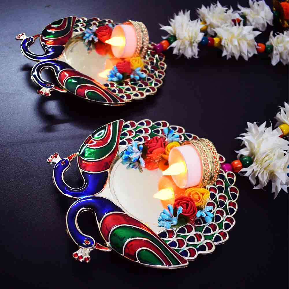 Set of Peacock Tealight Candle Hanging